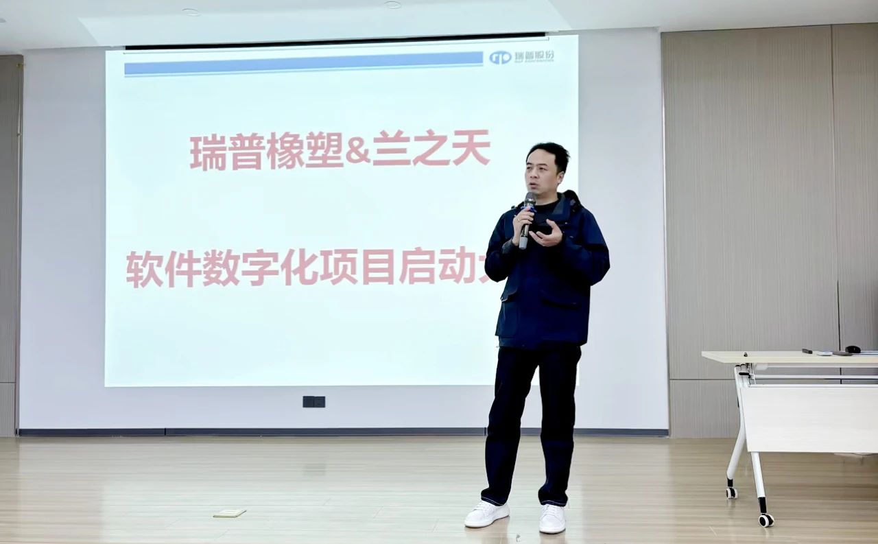 瑞普橡塑董事長程飛的動員講話為全體參會人員注入了強大信心。他明確指出,數字化建設是企業發展的必然趨勢,也是瑞普橡塑跨越發展的必由之路。在這個科技日新月異的時代,數字化、人工智能及大模型技術正深刻變革著人們的生活與工作模式,企業唯有積極擁抱這些新技術,方能避免被市場淘汰的命運。董事長程飛特別強調,數據作為企業的核心資源,其重要性不言而喻,員工在日常工作中產生的每一份數據都至關重要。在推進數字化建設的過程中,順暢的溝通與全員參與是成功的關鍵。他呼吁各部門主動與蘭之天團隊建立緊密交流,共同探索如何利用數字化工具優化工作流程。并倡導員工在遇到難題時及時溝通,在調研階段勇于提問,共同為項目的順利推進貢獻智慧與力量。隨著啟動大會的圓滿落幕,瑞普橡塑的數字化項目也正式揚帆起航。安徽瑞普橡塑有限公司與江蘇蘭之天軟件技術有限公司將充分發揮雙方的優勢,攜手打造數字化橡塑企業的新標桿,為行業發展注入新的活力。